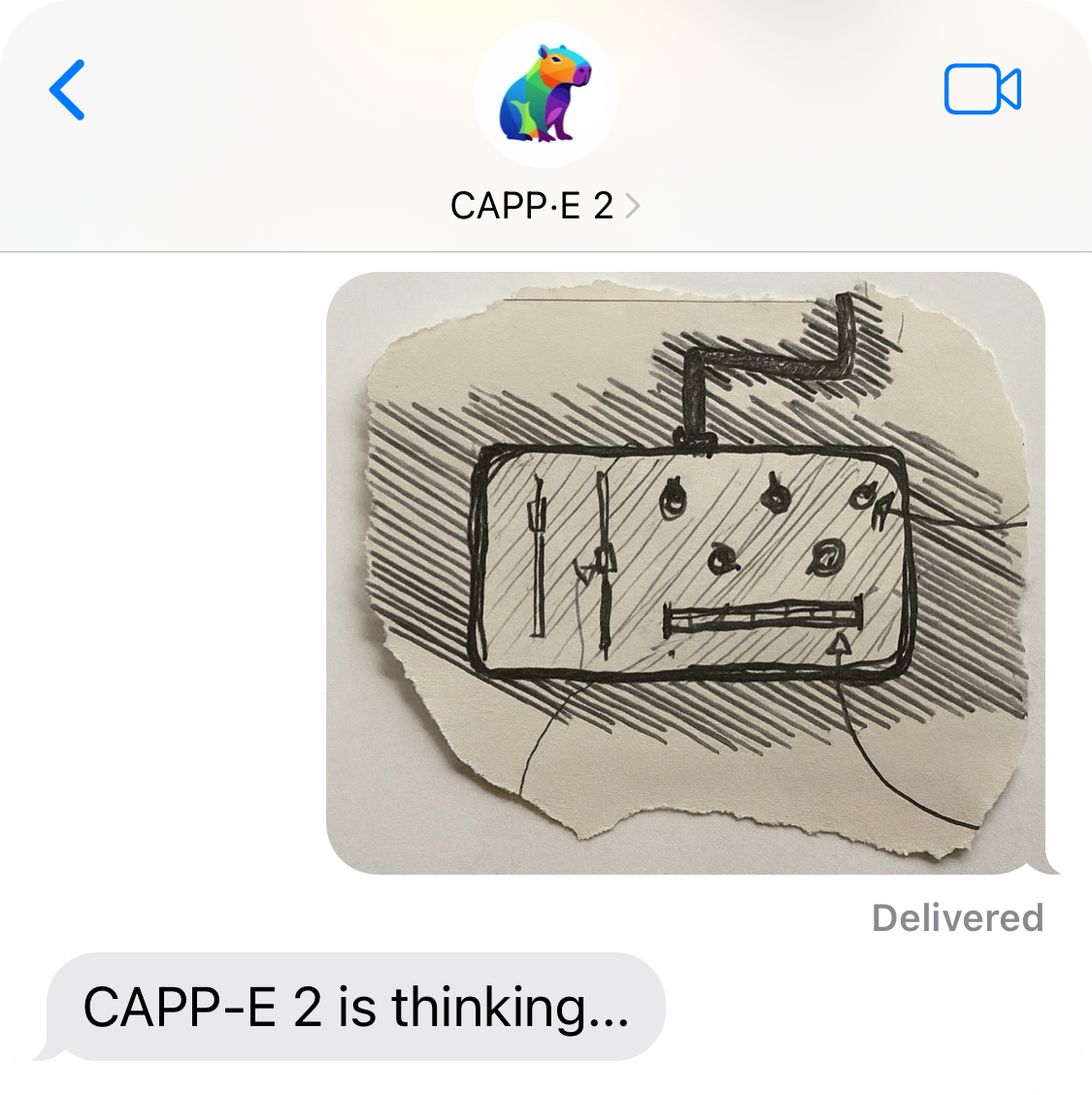 Note on access: CAPP·E 2 is currently deployed as an iMessage service for friends and family. Contact me for access. Public iMessage access and web interface coming soon!