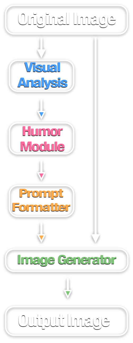 With the help of a complex "humor ideation" prompt, CAPP·E generates a highly detailed (and hopefully funny) plan to alter the image.