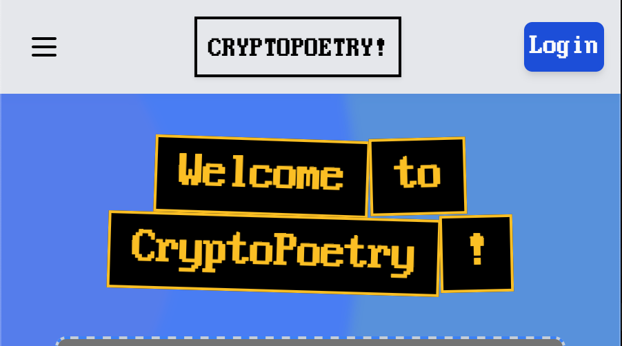 CryptoPoetry began in 2023 as an experiment in retrieving Ethereum event data within a p5.js sketch. Over time, it's grown into a tokenized creative ecosystem that lets users save their works of poetic genius in perpetuity on the blockchain.
